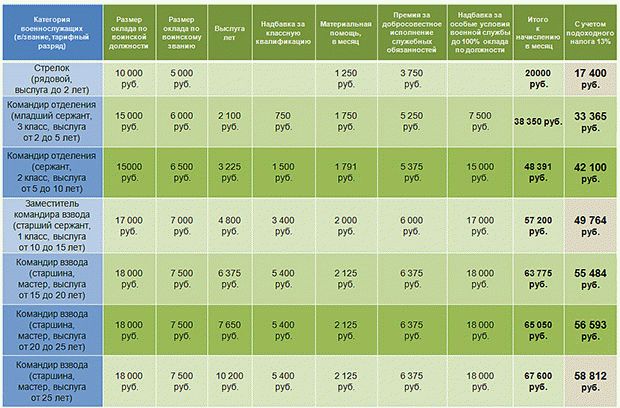 Таблица сколько примерно получают контрактники в России в 2025 году
