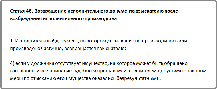 21 Закона РФ № 229-ФЗ, если дело было закрыто приставом ФССП из-за отсутствия у должника имущества |