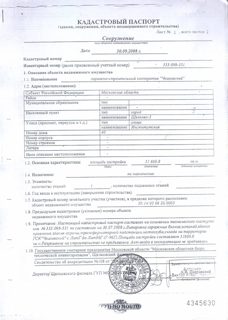 - кадастровый паспорт и пр.
