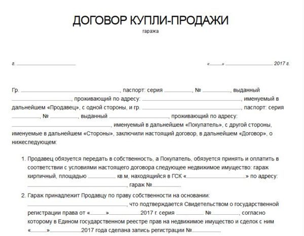 к содержанию ↑Как правильно оформить договор купли-продажи гаража в гаражном кооперативе (ГСК) и образец документа