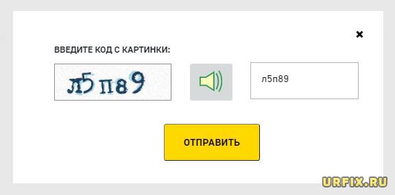 - Пройти каптчу, введя контрольные цифры и буквы в поле. В случае, если возникают сложности, можно их прослушать, нажав кнопку ;