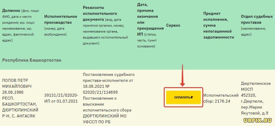 Также можно произвести оплату непосредственно на сайте ФССП, нажав кнопку «Оплатить».
