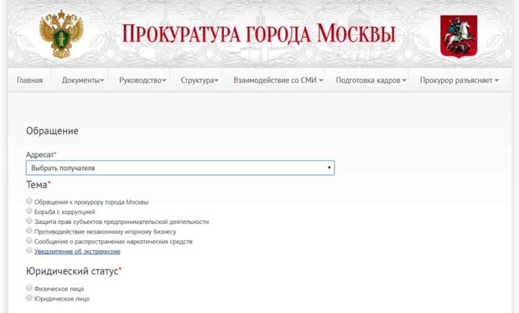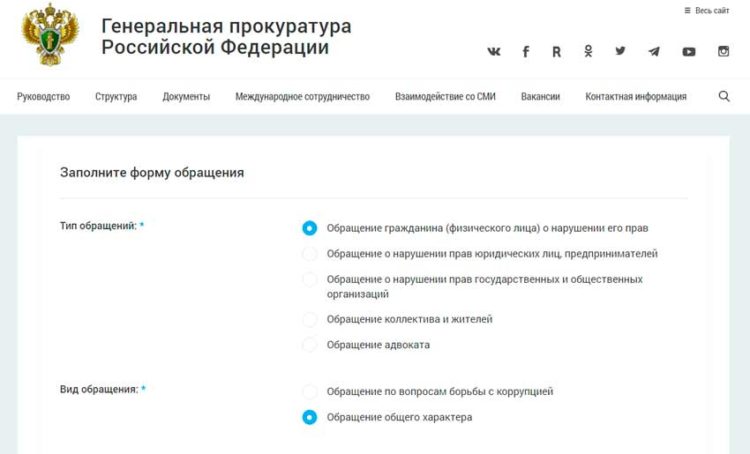 Возможна также подача жалобы в прокуратуру через интернет на официальном сайте ведомства. Для этого нужно: