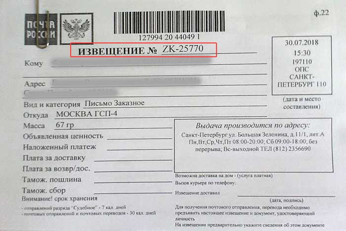 к содержанию ↑Извещение ZK письмо заказное – от кого, как узнать?