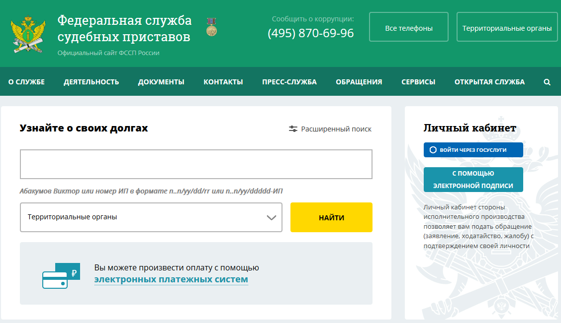 На странице доступны формы оплаты. Можно закрыть долг, как только узнаете о его наличии.