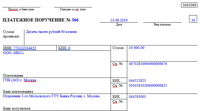 Образец платежки