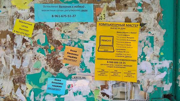 Стандартная ситуация — баннеры и флаеры размещаются там, где собственники не располагают временем или желанием для того, чтобы бороться с рекламой.