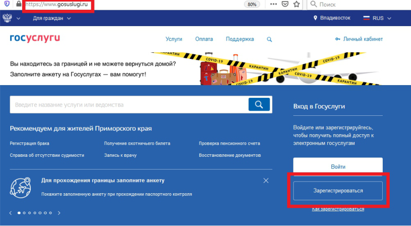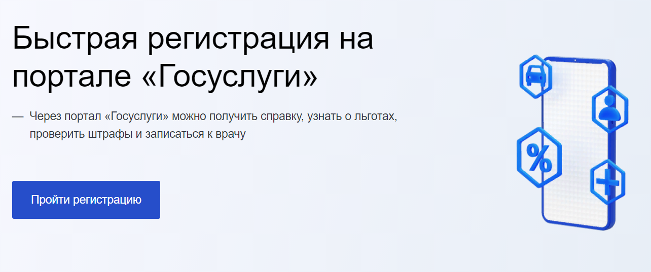 1. На портале Госуслуги ( gosuslugi.ru) нажмите кнопку «Зарегистрироваться»