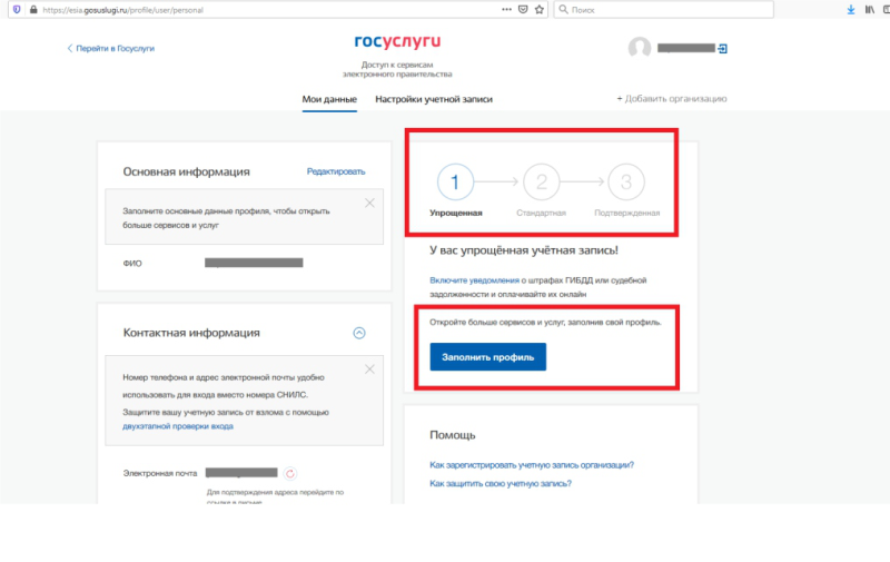 - Стандартная. В профиль вносят паспортные данные, СНИЛС. Документы проходят автоматическую проверку в ПФР и МВД. Эта степень позволяет уточнить наличие штрафов или записаться к врачу.