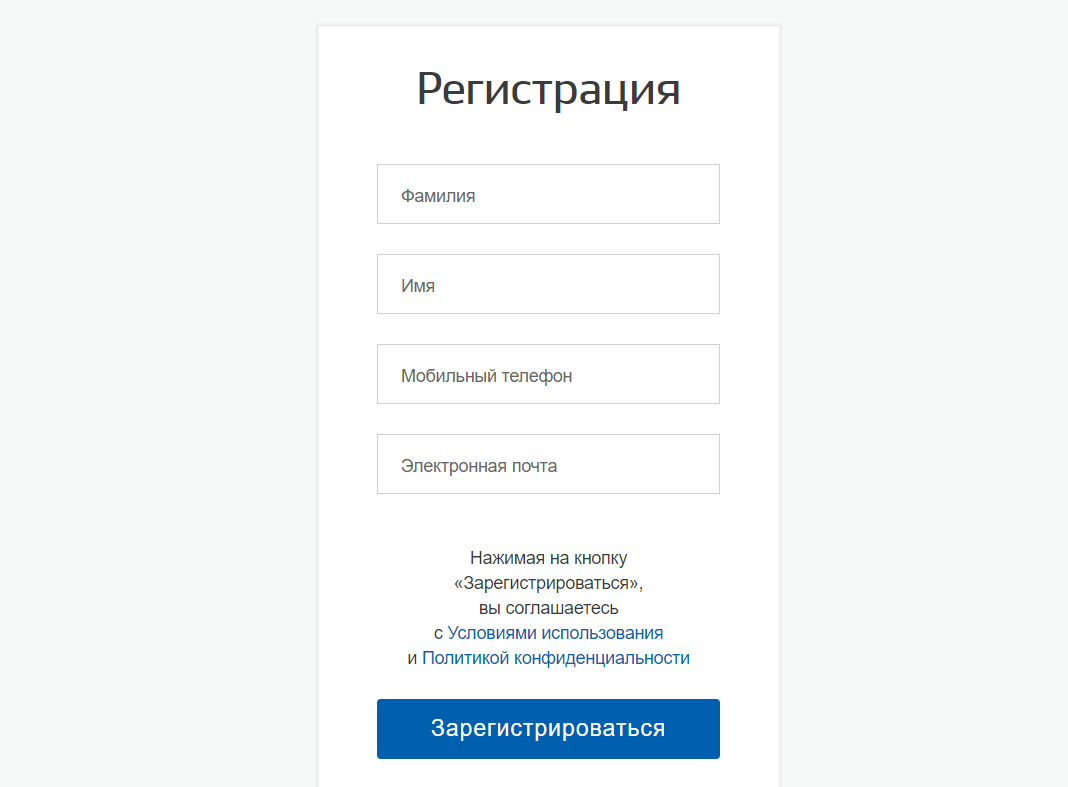 2. В появившейся регистрационной форме укажите свою фамилию, имя, мобильныйтелефон и адрес электронной почты, после чего нажмите на кнопку«Зарегистрироваться»