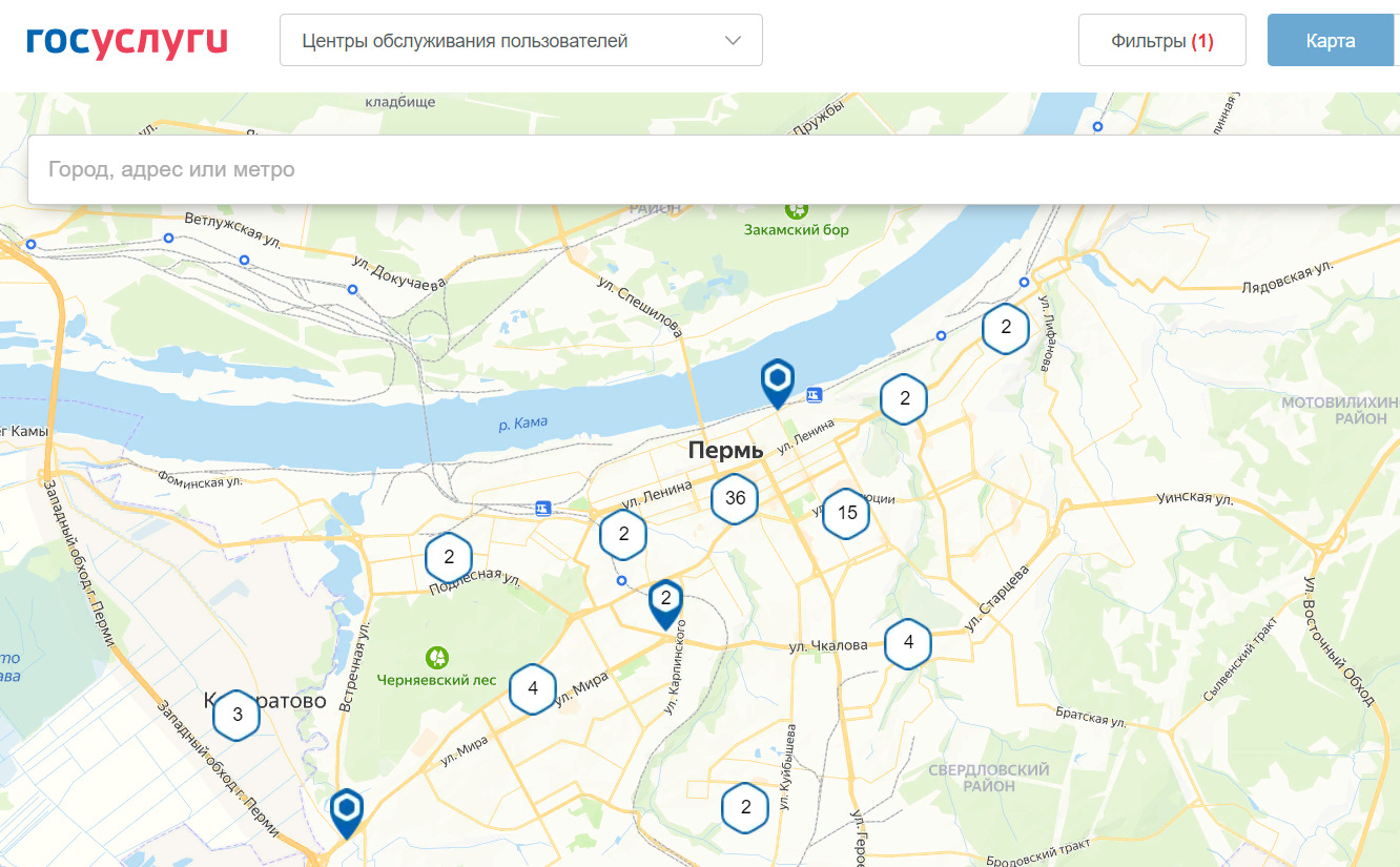 На сайте Госуслуги можно посмотреть расположение МФЦ по всей России. В фильтре поиска поставьте галочку напротив опции “Подтвердить личность”. Вы можете обратиться в любой отдел без предварительной записи в порядке очереди.