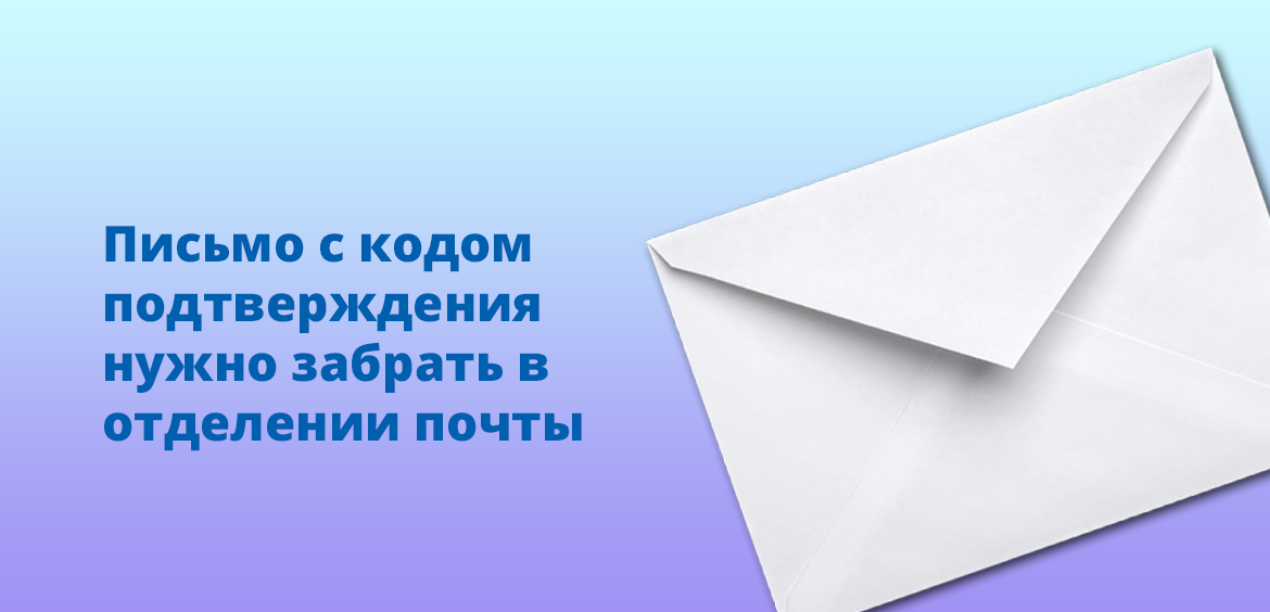 - Письмо выдается в почтовом отделении при наличии паспорта. В конверте будет письмо с кодом подтверждения.