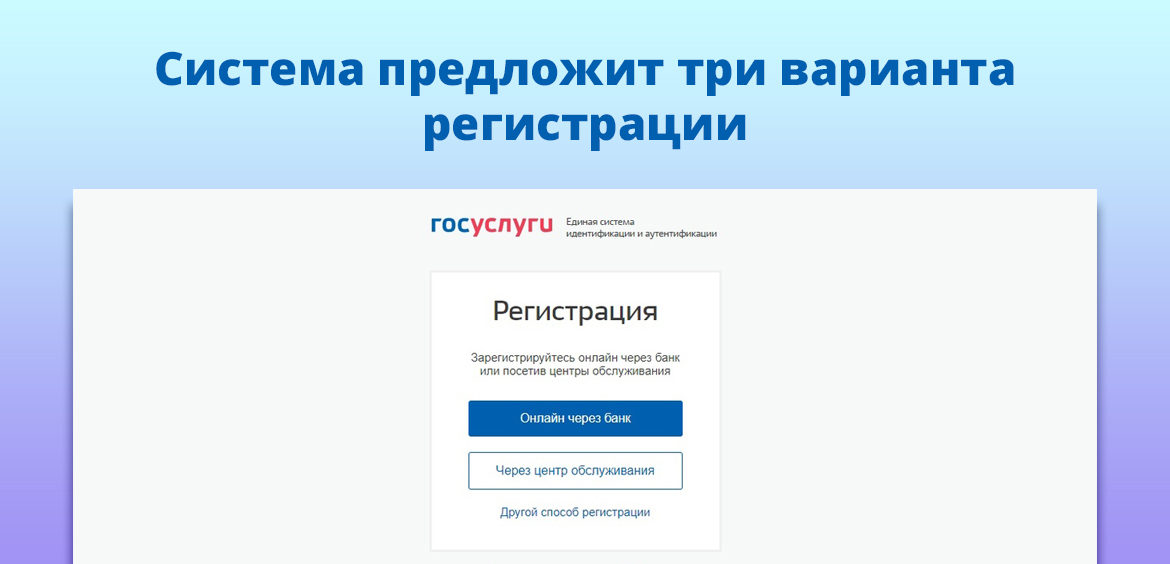 При условии, что Вы являетесь клиентом одного из банков — «Сбербанк», «Тинькофф» или «Почта Банк», Вы можете зарегистрировать и (или) подтвердить свою учетную запись в веб-версиях интернет-банков или мобильных приложениях без необходимости посещения МФЦ или центров обслуживания. В случае, если вы не являетесь клиентом одного из банков — «Сбербанк», «Тинькофф» или «Почта Банк» для подтверждения учетной записи вам необходимо посетить МФЦ или центр обслуживания.