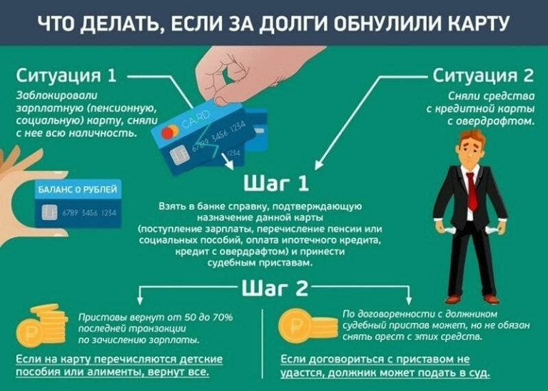 Если ошибка все же случилась и с карты списали средства, которые по закону списать не имели права, или один и тот же долг списали несколько раз, необходимо действовать так:
