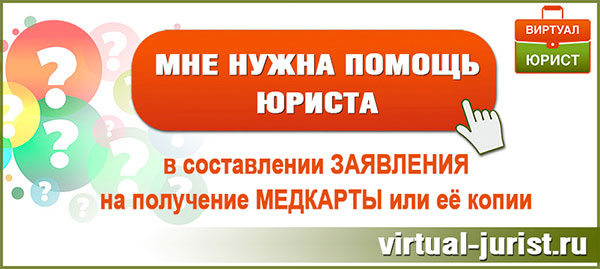 Если у вас есть проблема в получении своих документов из медучреждения и вам нужна помощь в составлении заявления на получение своей медкарты или её копии из поликлиники, сообщите об этом по электронной почте: info@virtual-jurist.ru