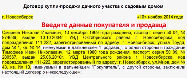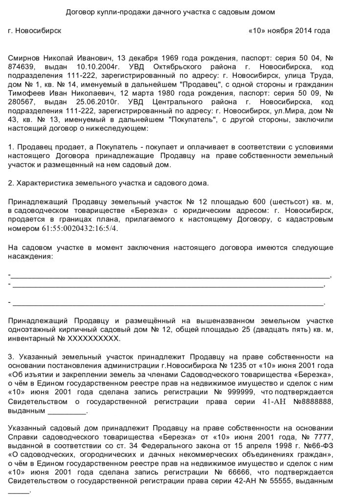 к содержанию ↑Образец договор купли продажи дачного участка с садовым домом