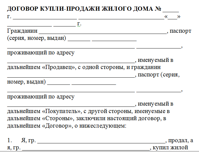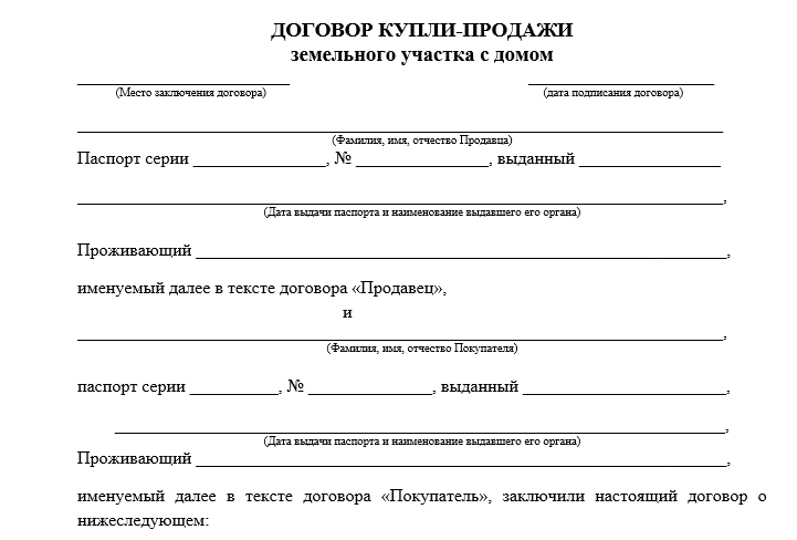 Главная » Документы » договоры » Договора купли-продажи » Как выглядит договор купли-продажи дома без земельного участка?
