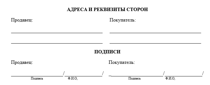 7) Завершается заполнение договора отображением реквизитов сторон и подписанием документа участниками сделки.