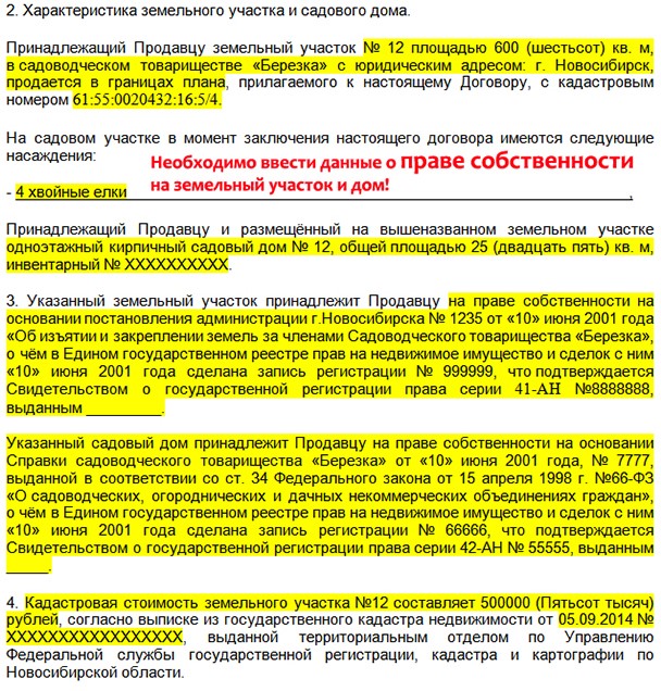 Стоит отметить, объектом сделки здесь является земля, которая должна иметь конкретные границы и целевое назначение. Также в документе описываются все имеющиеся на данной территории постройки.