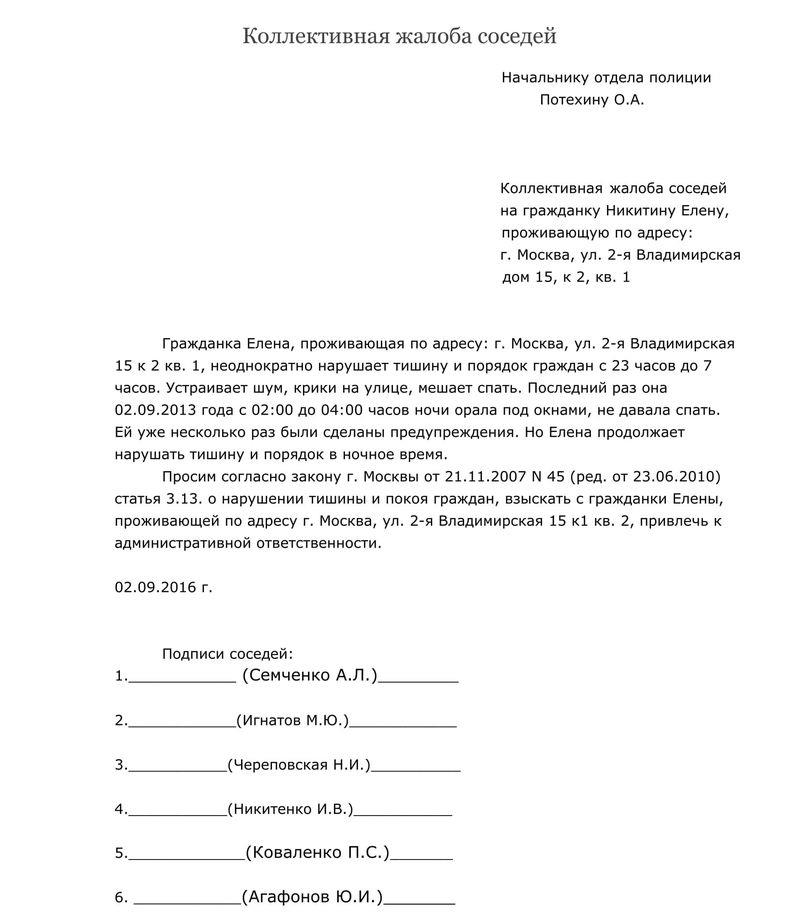 Соседи, нарушающие правила проживания граждан в многоквартирных домах, часто становятся общей проблемой жильцов. Для цивилизованного разрешения неприятной ситуации необходимо составить коллективную жалобу на соседей, образец которой вы найдете в статье.