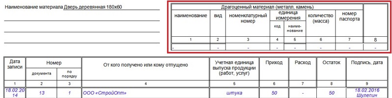 Если вы имеете дело с драгметаллами — перепишите в книгу складского учета (форму М-17) данные о них из паспорта изделия. Для этого есть отдельная таблица.