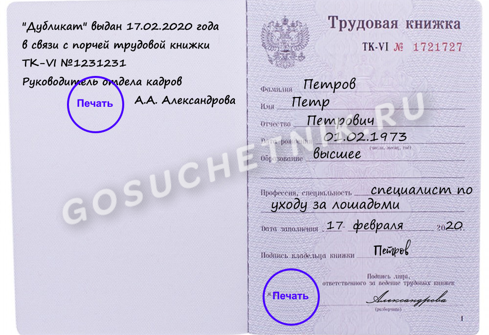 Оформление дубликата трудовой книжки
