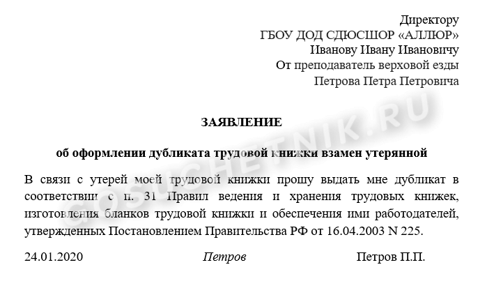 Еще несколько правил о том, как сделать дубликат трудовой книжки при утере и другим причинам: