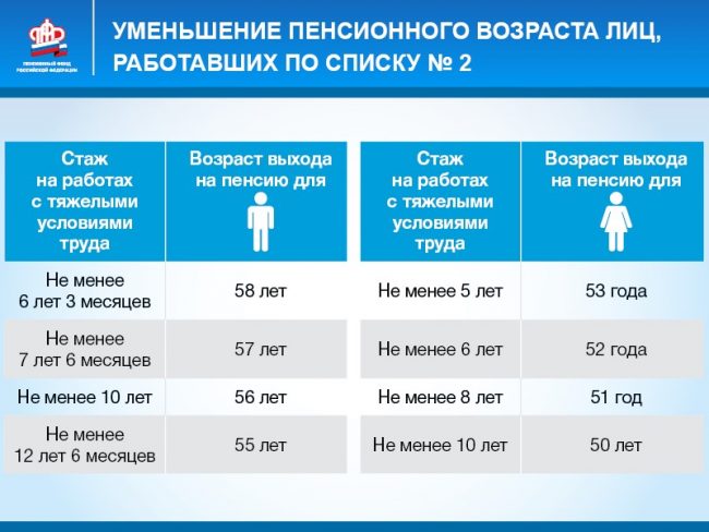 Год работы по профессии, которая находится в первом списке, будет засчитываться в качестве стажа за 2 года. А два года для женщин и два с половиной года для мужчин работы по профессии, которая находится во втором списке, будет засчитываться в качестве стажа за 3 года.