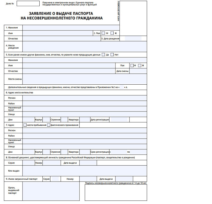 Заявление о выдаче паспорта на несовершеннолетнего гражданина