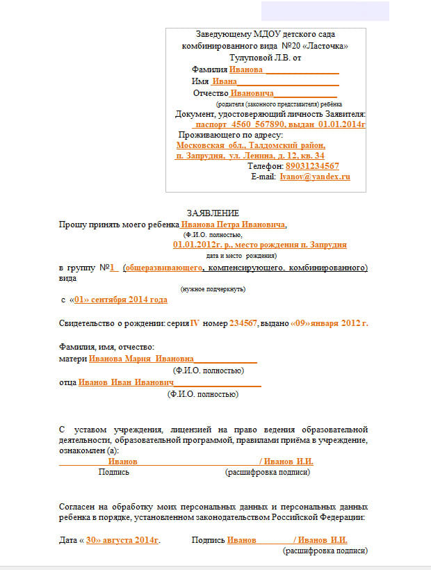 Ребёнок с 14 лет пишет заявление самостоятельно в присутствии родителей.