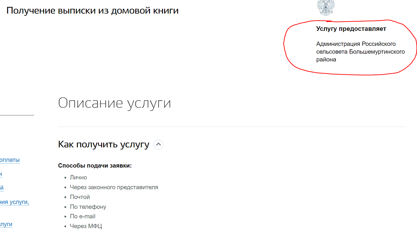 Но портал указывает на то, кто оказывает услугу по месту проживания гражданина. В данном случае — администрация района. А получить документ можно, обратившись к администрации лично, по Почте, по электронной почте. Или же можно просто подать заявление на выдачу архивной справки в МФЦ.