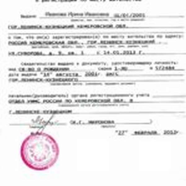 - свидетельство о месте регистрации;
