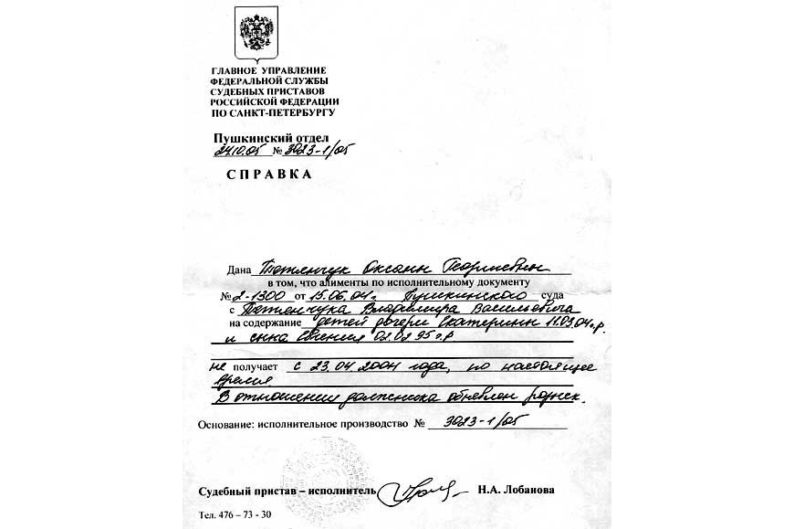 к содержанию ↑Справки об алиментах из Федеральной службы судебных приставов (задолженность, уплата, отсутствие алиментов)