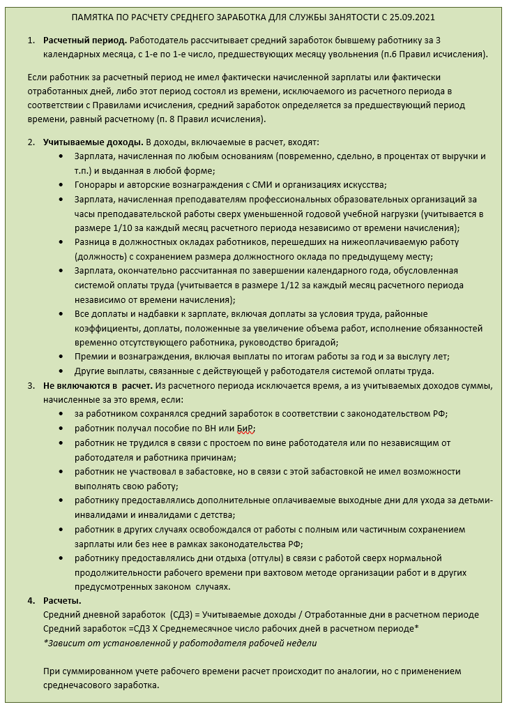 к содержанию ↑Расчет среднего заработка по последнему месту работы с 25 сентября 2021 года